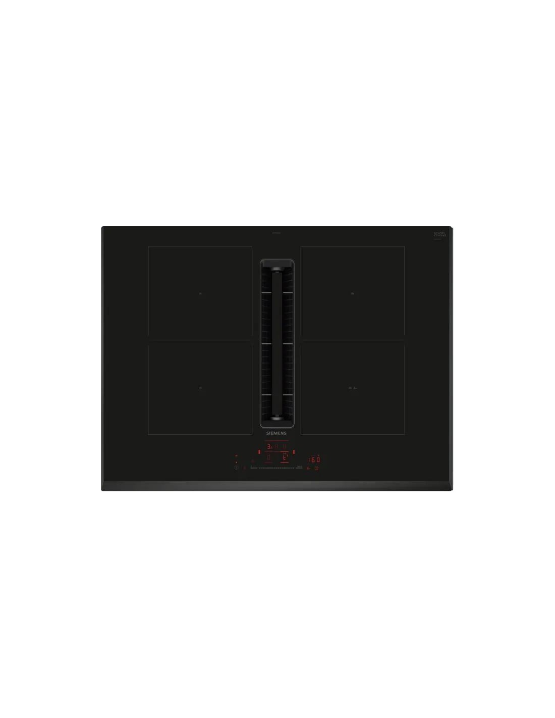 SIEMENS, ED751HQ26E, Encimera, Inducción con extractor integrado, B, Encastrable, 70 cm., 4 zonas, HC, Color negro / biselado, touchSlider+,combiInducción, fryingsensor 11 niveles, motor iQdrive, funcion AutoOn , 622 m3/h (595 m3/h recirc.), biselado.