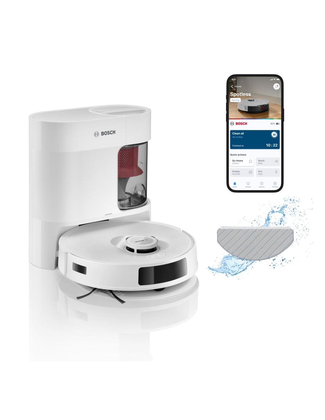 BOSCH, BCRD2W, Aspiración, Robot aspirador, 1, Spotless, Blanco, Aspirador Robot Advance Plus con estación con depósito de polvo; litio 6260 mAh, Spotless, Smart Vision con infrarrojos, estación de carga, mopa vibrante