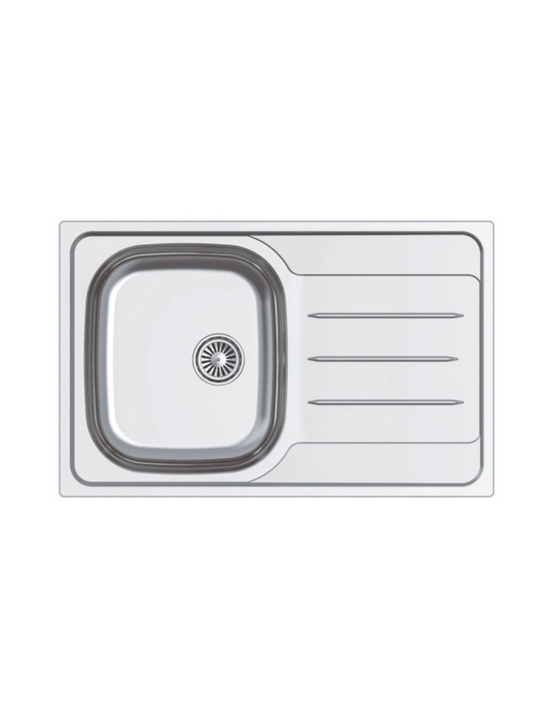 Cubeta cuadrada con escurridor reversible/ Instalación en mueble mínimo de 45cm/ Dimensiones: 79 x 50 cm/ Profundidad de la cubeta 18cm/ Base con fondo fono absorbente/ Acero inoxidable AISI 304 18/ 8/ Válvula canasta 3 1/ 2/ Grosor 0,8mm/ ? A
