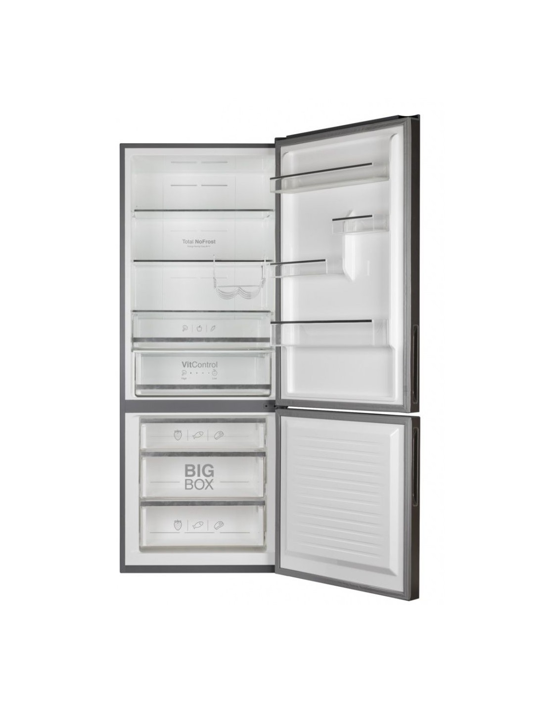 Frigorífico Combinado 70 Cm | Inoxidable | Full No frost | Display en Puerta | Funcion Eco y Vacaciones, Super Freeze y Super Cool ,Alarma puerta abierta | Botellero Cromado | 1 Cajón Verdulero con VitControl | Iluminación LED Doble Lateral | Volumen tot