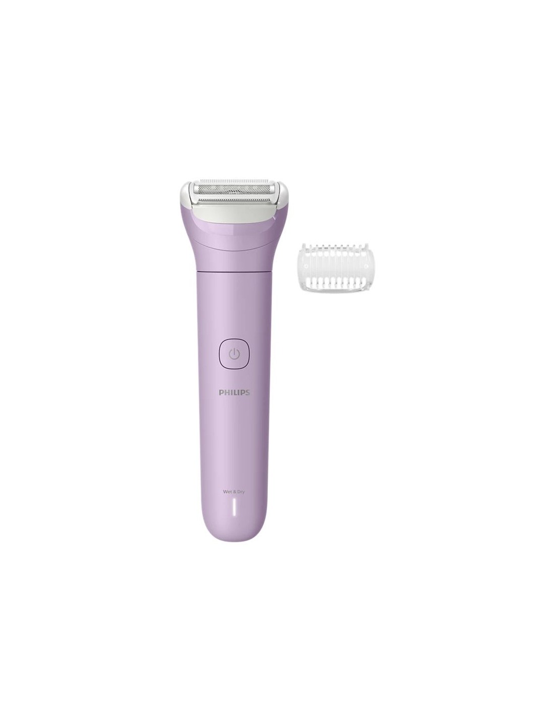 Rasuradora femenina 6000. Lámina individual flotante para un afeitado corporal rápido, cómodo y sin irritaciones. Uso en seco y en húmedo. Cuchilla hipoalergénica. Funciona con batería y tiene una autonomía de hasta 80 minutos. Incluye 4 accesorios: pein